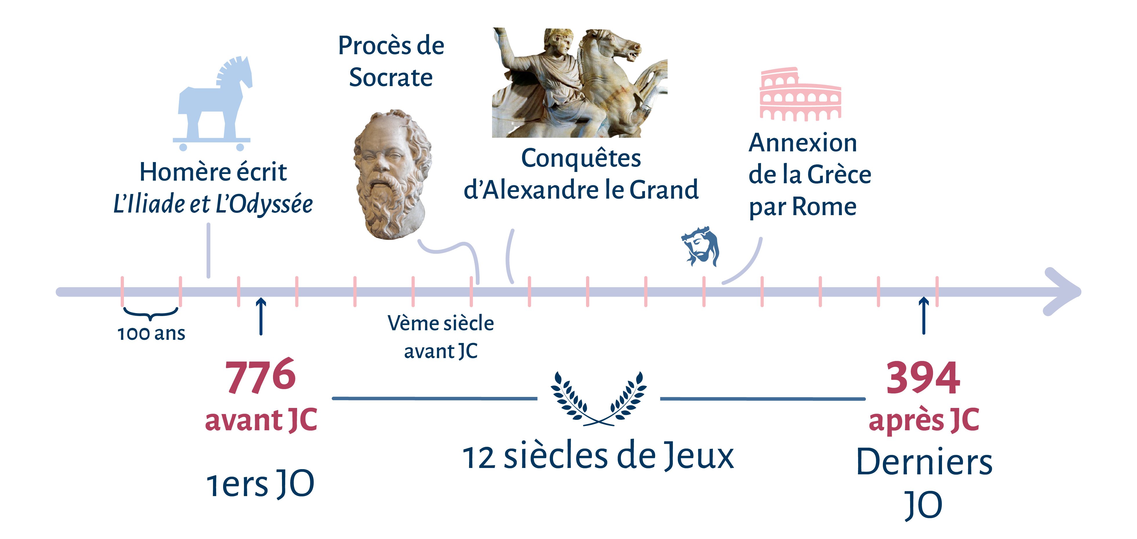 Et pour comprendre l’importance qu’ont pu avoir les Jeux Olympiques antiques, il suffit de s’arrêter sur la chronologie. Les Jeux sont interdits en 394 par l’empereur romain Théodose Ier, converti au christianisme. Il y a donc près de deux douze siècles qui séparent leur fin de leur création. Pour vous donner un élément de comparaison, si nous voulons faire au moins aussi bien avec nos JO modernes, il faudrait qu’ils soient maintenus jusqu’en… 3 066 !